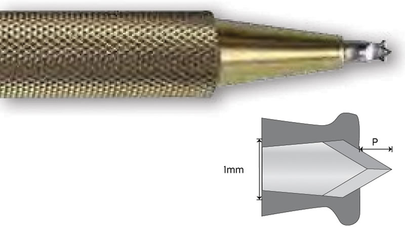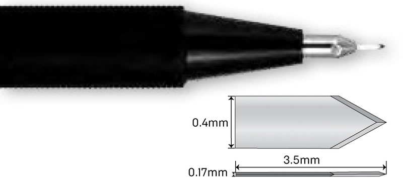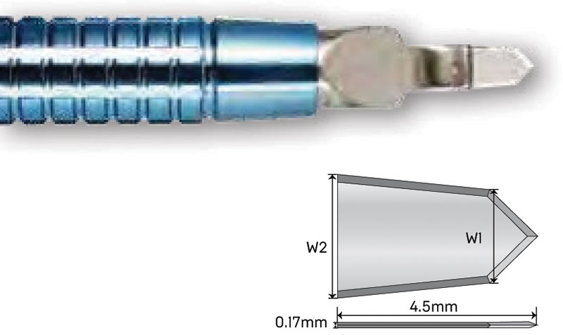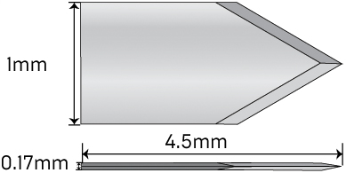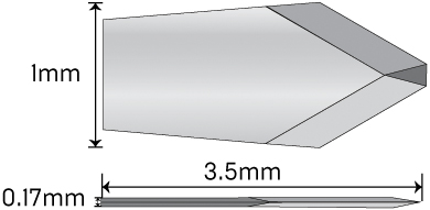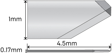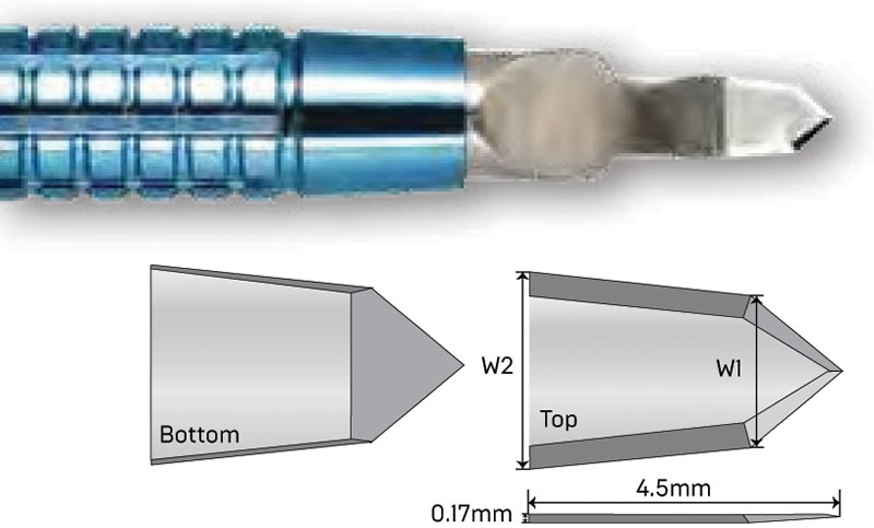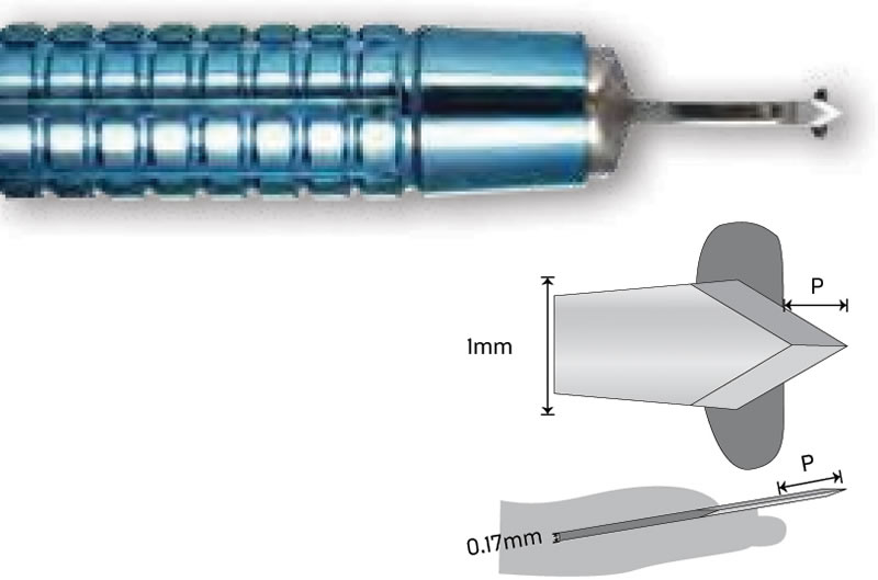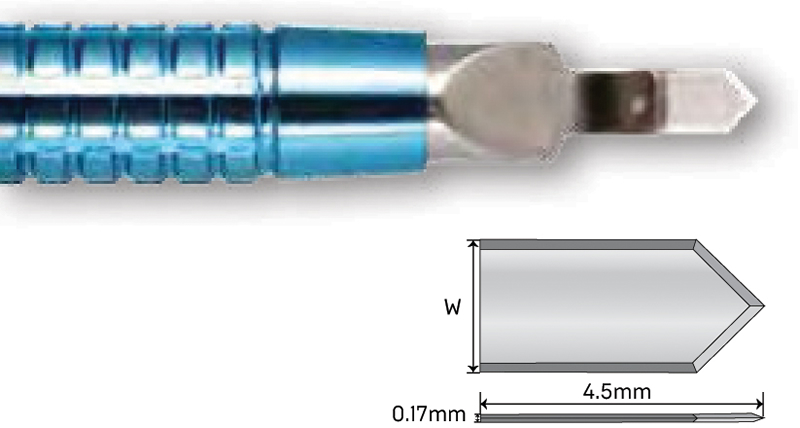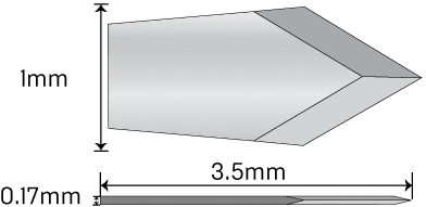 AK6175: 1.0 mm lancet Available in: Angled, short handle, long handle, titanium, and preset |